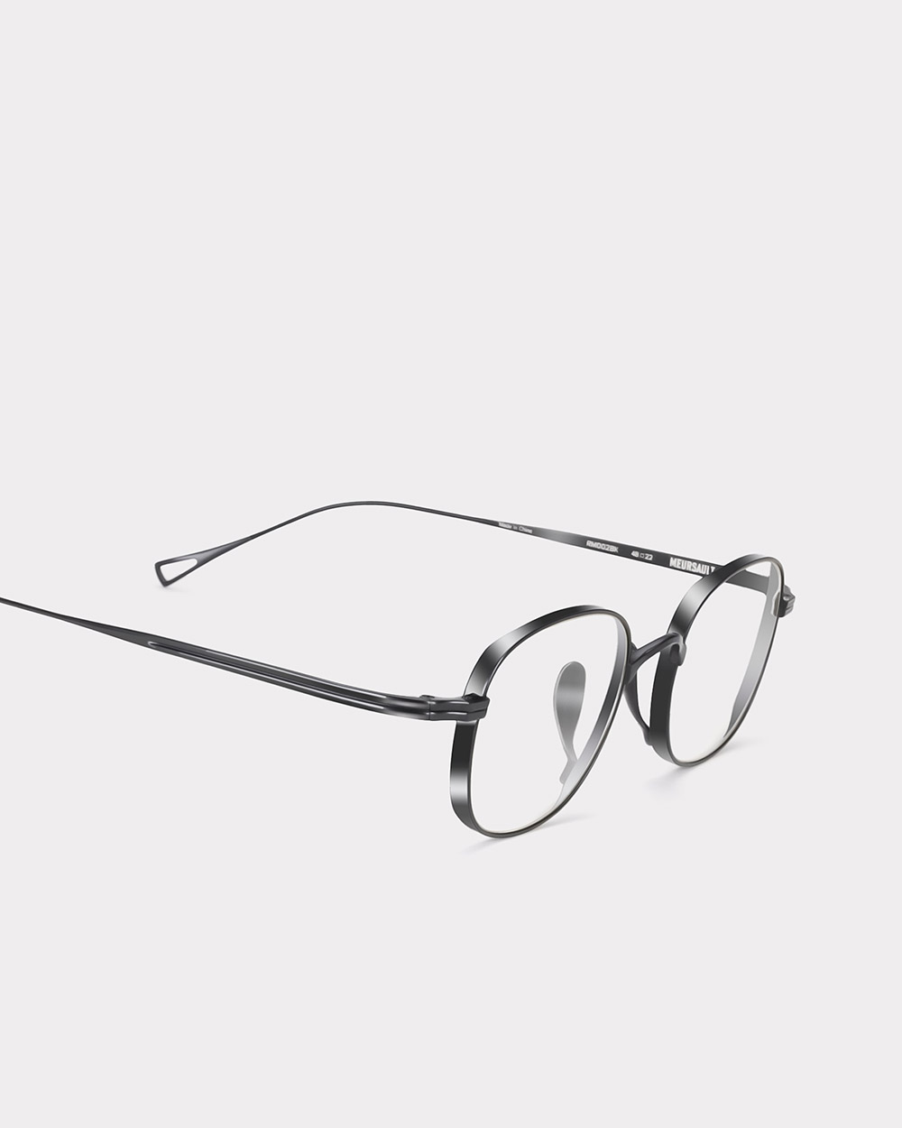 리가시 뫼르소는 상하폭이 안정적인 스퀘어형 메탈 안경입니다. 티타늄 소재로 제작되어 약 9.8g의 초경량 무게를 자랑하며, 플랫 림 구조는 두꺼운 렌즈도 커버해주며 깊이감 있는 인상을 만들어냅니다. 블랙과 실버 두 가지 컬러로 전개됩니다.